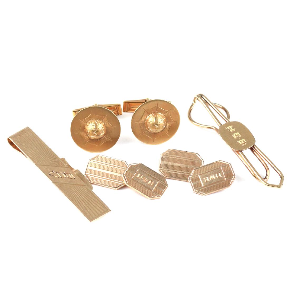 14K gold cufflinks with platinum fronts: pair of diamond and pair of sapphire, unmarked tested.Ripley Auctions4.4(197)$5007 days Left