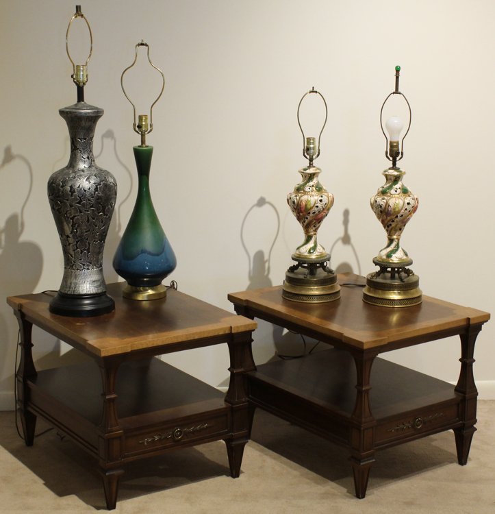 Lot 4 Allite Brass Lamps W Frosted Glass ShadeMar 18, 2026A PAIR OF REGENCY STYLE LAMP BASESMar 19, 2026Three Chinese Porcelain Table Lamps4 days LeftPair point Boudoir French Empire and Art Nouveau Table Lamps (3)Mar 28, 2026Three Neoclassical Style Patinated Metal Table Lamps4 days Left2 table lamps, silver plates with decorative reticulated designs & copper table lamp with mica shade2 days LeftTwo table lamps, Spode style urn form lamp & brass column lamp with pressed decorations, 24.5" & 36"2 days LeftPair Ruby to Clear Gilt Glass Table LampsMar 18, 20264pc Catalytic Fragrance Effusion Lamps with Vented CoversMar 15, 2026Pair of White Ceramic Table Lamps with Antique Brass DetailingMar 21, 2026TWO PAIRS OF TABLE LAMPS Early 20th Century Heights to fixtures 20.5" and 22".Mar 25, 2026