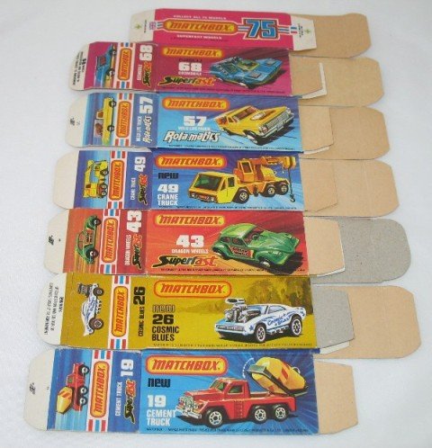 6x different 1970's Matchbox Superfast boxes
