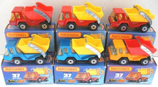 6x Matchbox Superfast 37c Skip Truck. Variations