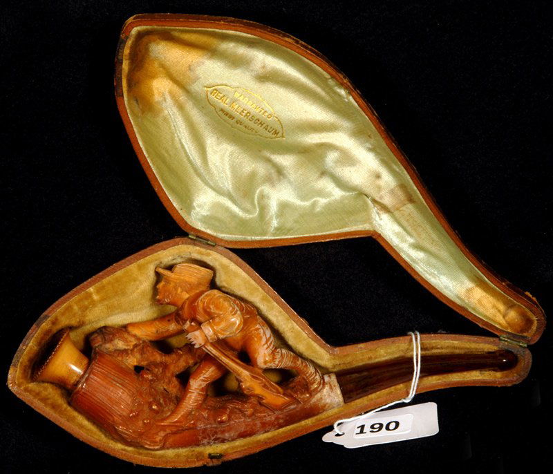 A Carved Meerschaum Figural Smoking Pipe with Fitted Case, c.1900