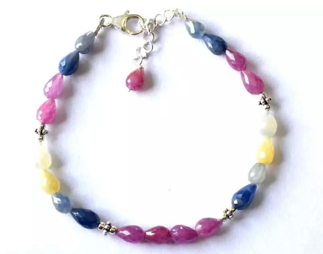 7 - 8" BRACELET NATURAL MULTI SAPPHIRE BEADS BRIOLETTE SOLID 925 SILVER