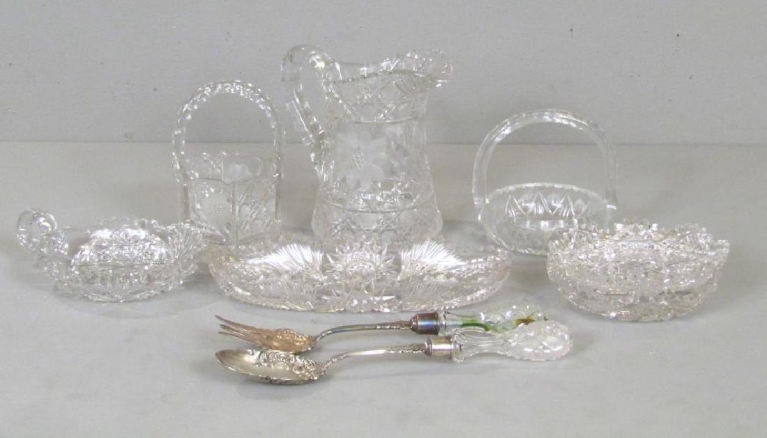 7 American Cut Glass Articles & 2 Serving Articles