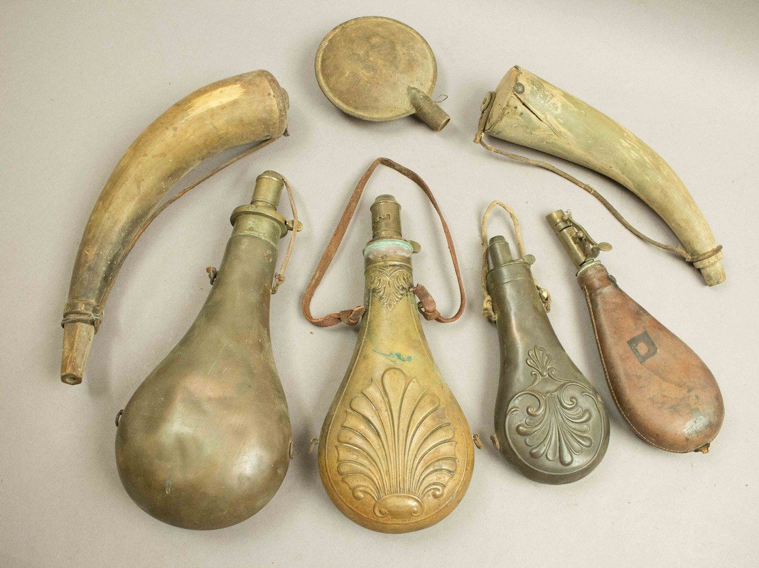 7 Assorted Powder Flasks