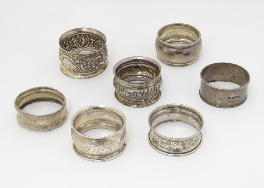 7 assorted silver napkin rings. (106g)