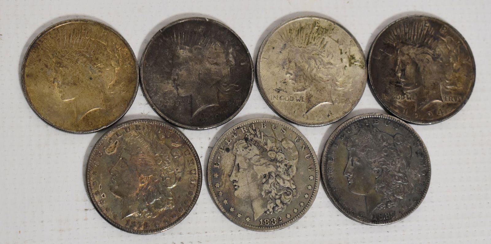 7 ASST. MORGAN/PEACE SILVER DOLLARS, VARIOUS DATES