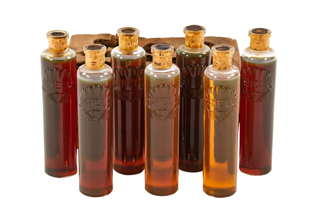 7-Embossed Shell Oil Test Tubes with corks