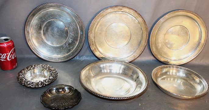 Sold7 Heavy Pieces Of Sterling Silver 38.74 Ozt7 heavy pieces of sterling silver 38.74 ozt in nice condition. Needs polishing.See Sold Price