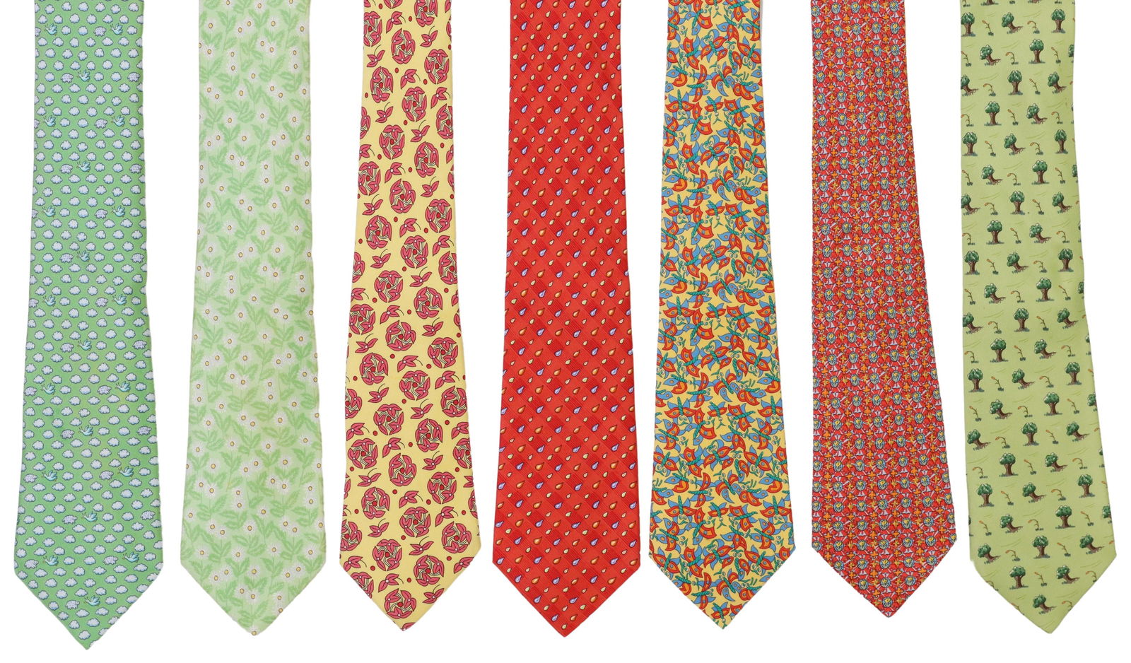 (7) HERMES SILK MENS NECK TIES VARIED PATTERNS