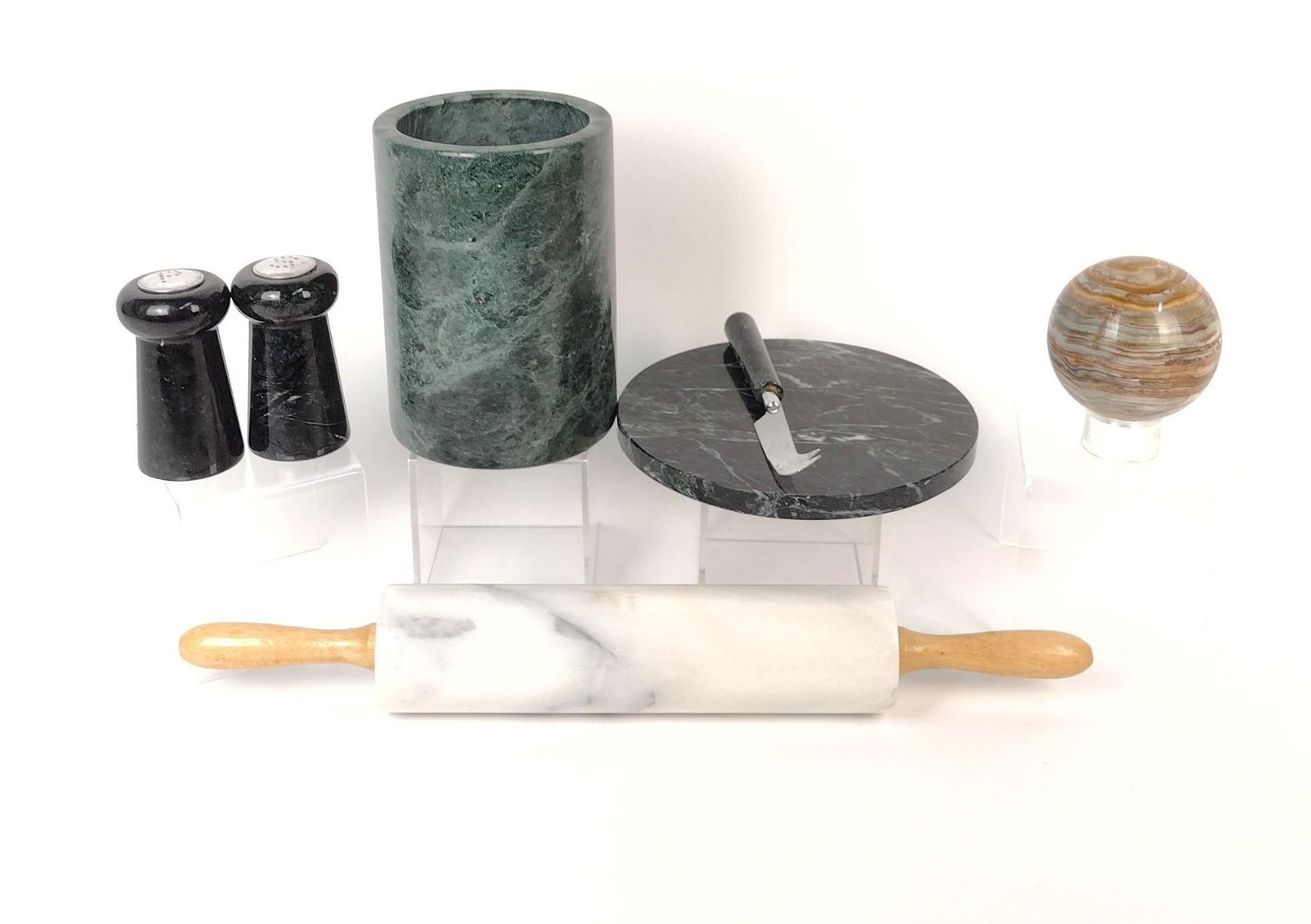 7 Marble Pcs Kitchenalia incl Rolling Pin