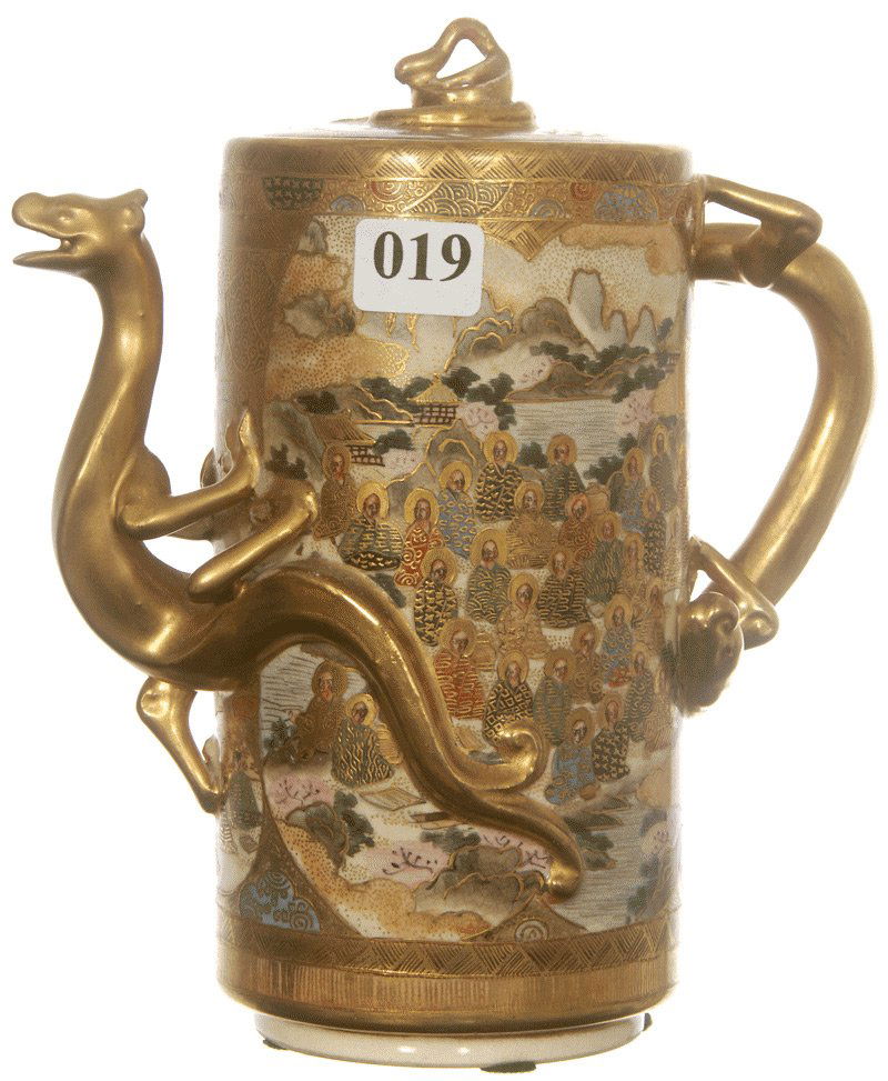Gyokushu Satsuma Earthenware Saki Pitcher, C. Meiji Period