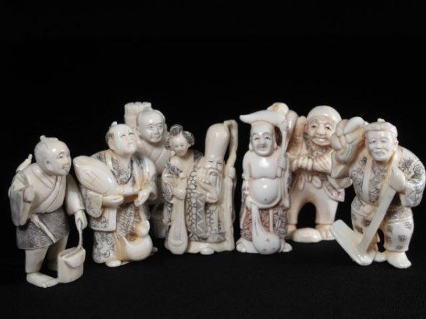 7 ORIENTAL CARVED IVORY NETSUKE - FIGURAL
