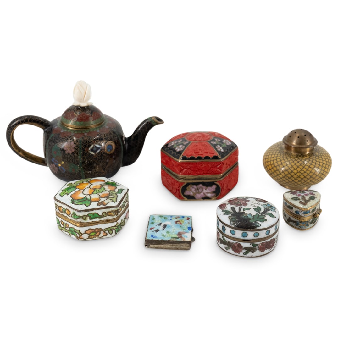 (7 Pc) Chinese Cloisonne Enamel Assorted Grouping Set