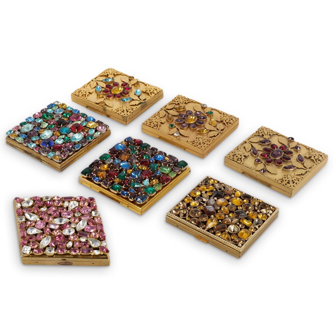 (7 Pc) Vanity Jeweled Powder Compact Cases