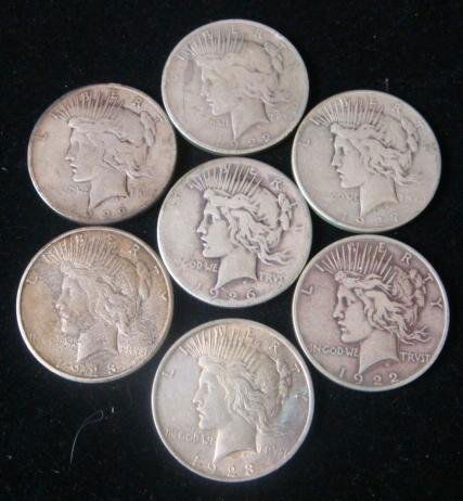 7 PEACE SILVER DOLLARS, Circulated Condition