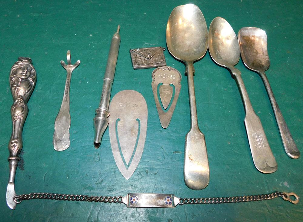 MISCELLANEOUS SILVER LOTMar 22, 2026Estate lot vintage sterling silver jewelry, including Native American bracelets, rings, sterlingApr 10, 2026Lot of Assorted Coin Silver Pieces, 29.89 Troy Ounces1 day LeftFRANCIS HIGGINS STERLING SILVER UTENSILS LOT OF 6Mar 28, 2026FRANCIS HIGGINS STERLING SILVER UTENSILS LOT OF 6Mar 28, 2026FRANCIS HIGGINS STERLING SILVER UTENSILS LOT OF 6Mar 28, 2026FRANCIS HIGGINS STERLING SILVER UTENSILS LOT OF 6Mar 28, 2026STERLING SILVER lot of TOWLE bamboo pattern flatware, nice overall condition, from local estate,Apr 10, 2026Goodell Co. Antrim New Hampshire Flatware & 2 others (11)Mar 21, 2026Antique small & miniature belt buckles. Lot of 113 days LeftEight Vintage Eternally Yours Silverplate Silverware4 days Left(54) WATSON 'MEADOW ROSE' STERLING SILVER FLATWARE SET, 51.70 OZTMar 29, 2026Sterling Silver Flatware7 days LeftEnglish Silver Serving Pieces7 days LeftAssembled English Coin & Sterling Silver Flatware7 days LeftSilver Flatware7 days Left