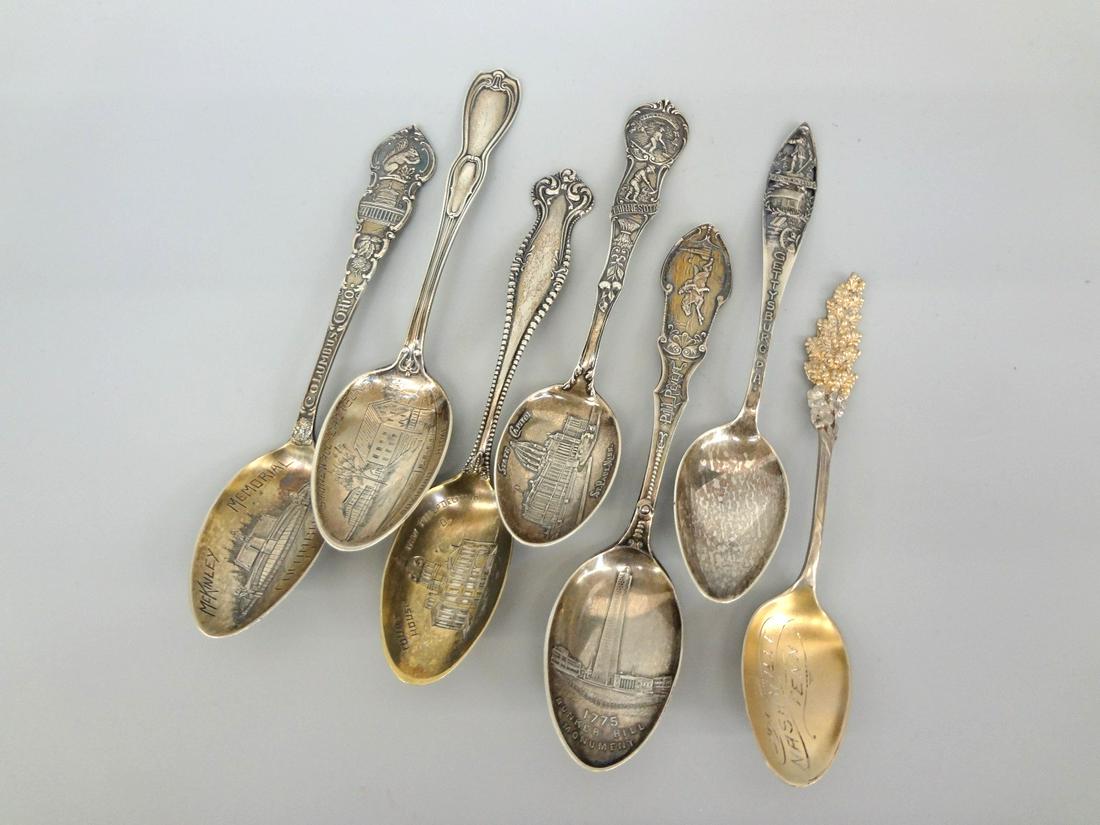 (7) Sterling Silver Souvenir Spoons