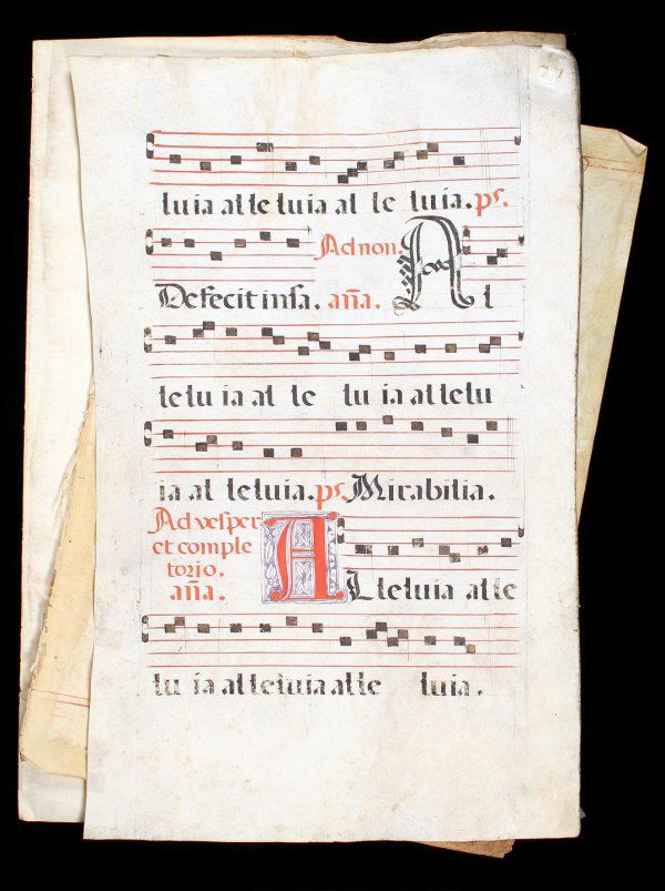 Sold1400s EXQUISITE Medieval Manuscript Antiphonal CHANT1400s EXQUISITE Medieval Manuscript Antiphonal CHANT Gregorian Music Catholic Church An incredible, rare collection of medieval antiphonal chant leaves handwritten on vellum. The music is written withSee Sold Price