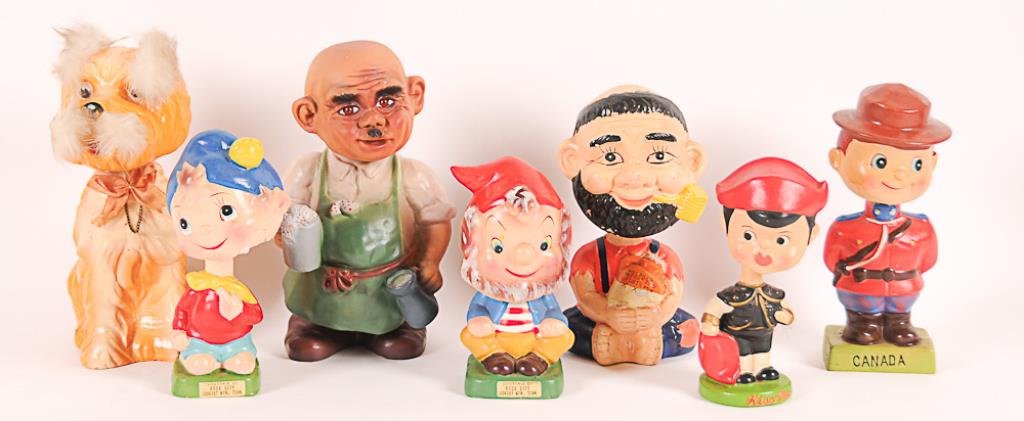 7 Vintage Bobbleheads or Nodders Comprising: Ceramic