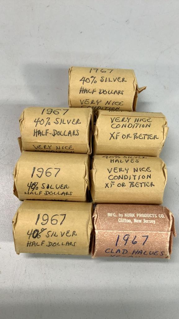 Sold70 1967 Clad Half Dollars40 % Silver, 35.00 face value, circulated , have opened one roll to verifySee Sold Price