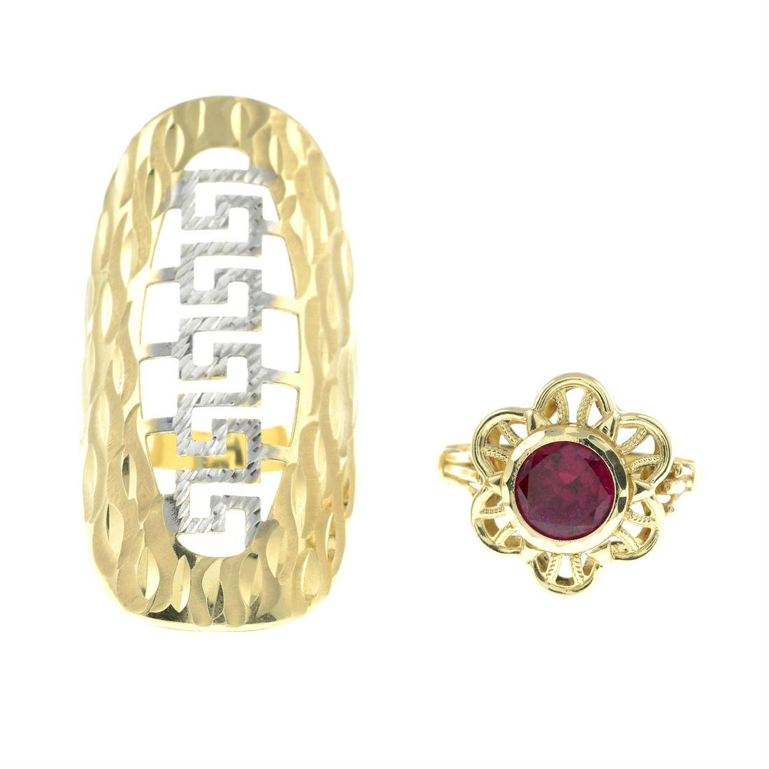 SoldFive gold gem-set rings. To include an early 20thFive gold gem-set rings. To include an early 20th century platinum and 18ct gold single-cut diamond three-stone crossover ring, an early 20th century 18ct gold and platinum synthetic ruby dress ring,See Sold Price