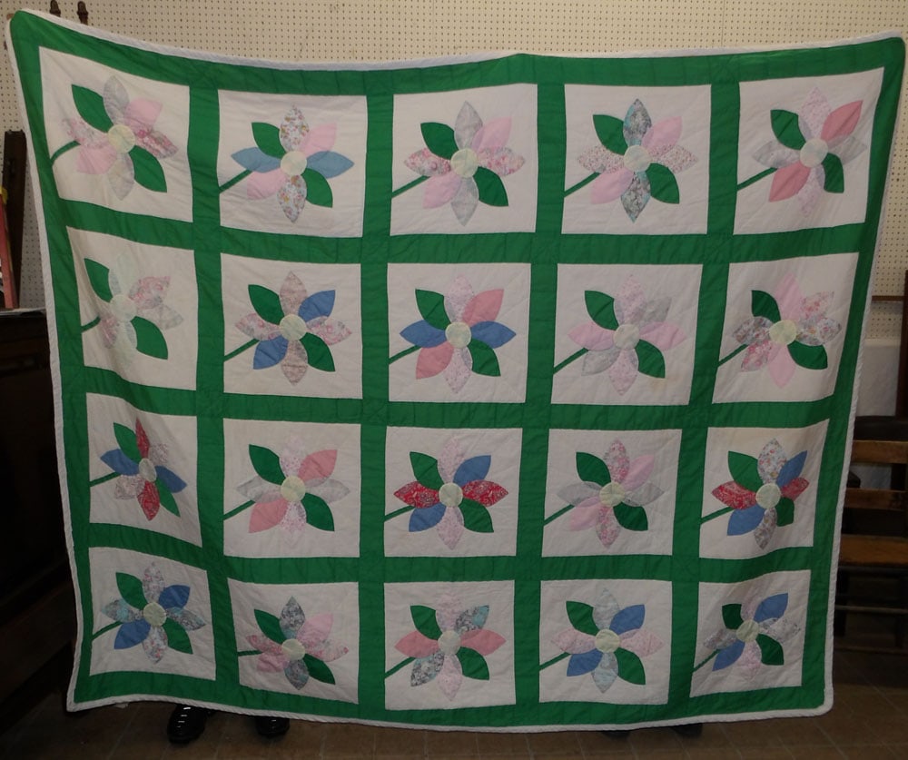 Lot LinensMar 04, 2026Lot Crotched CoverletsMar 04, 2026Lot Pillows - LinensMar 04, 2026Star Pattern Quilt with black and white border 52 x 365 days LeftHuge Heavy Vintage Crazy Quilt 97 x 795 days LeftAmish center diamond crib quiltMar 06, 2026Patch Work Quilt With Random Vintage FabricEarly Amish crib quiltMar 05, 2026Antique Hand Made QuiltMar 04, 2026ANNA GEORGIA LAKE (1870-1955), PERTH AMBOY, NEW JERSEY "TULIP" APPLIQUE QUILTMar 05, 2026Vintage Quilt Diagonal Stripes - Southwest scene on back 78 x 815 days LeftMulti-Color Patchwork Quilt, Embroidered with date Sept. 29, '44. Some light spotting & wear. 88"L x2 hrs LeftDouble-sided Patchwork Folk QuiltMar 14, 2026Hand Stitched Multi Textile Patchwork Quilt6 days LeftVintage Machine Quilted Green & White Blanket Bedspread. Measures 78" x 80" See pics.Fall Themed Cotton Patchwork QuiltMar 07, 2026