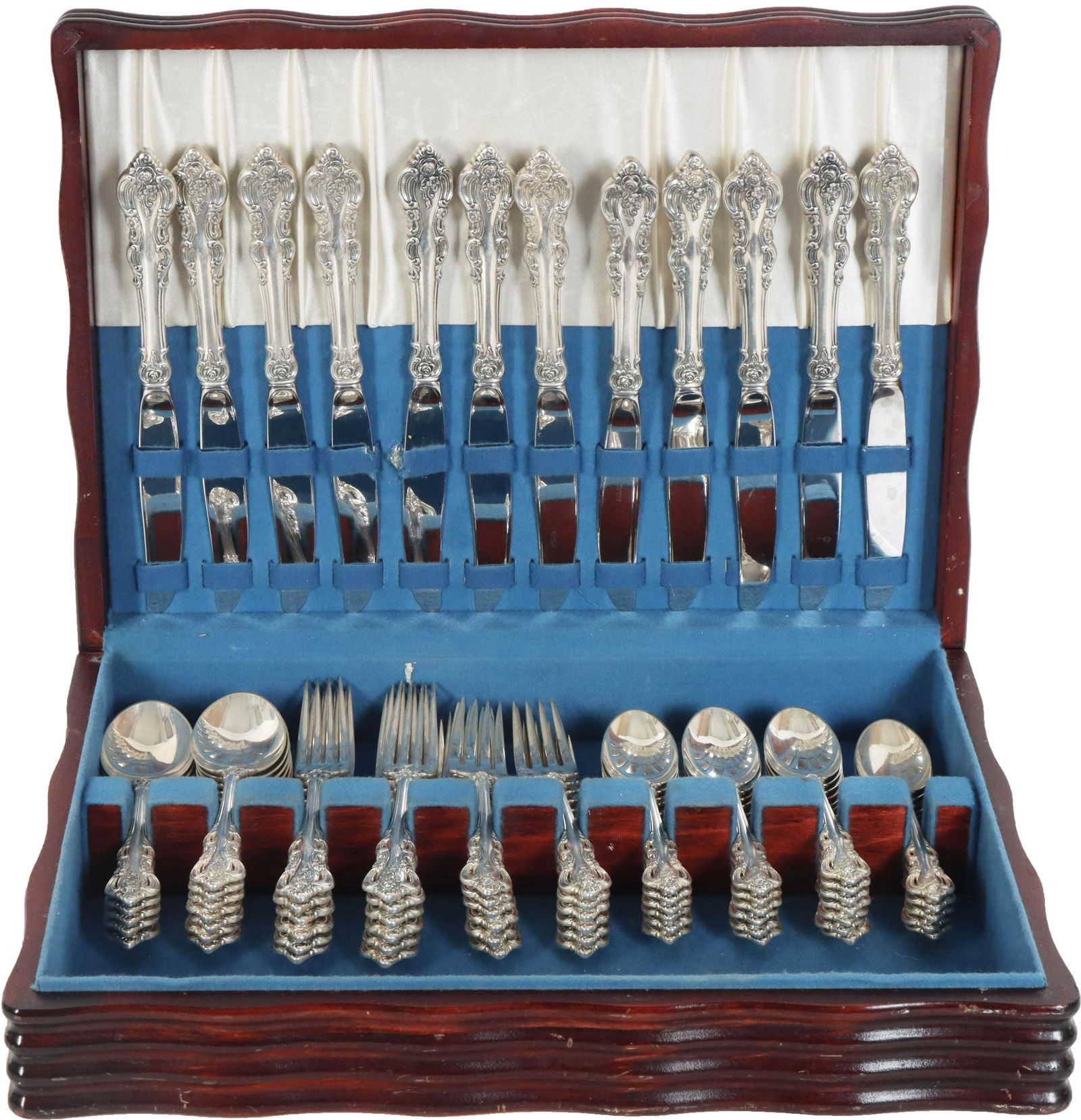 Gorham Sterling Flatware Service for 12Mar 10, 202664 Piece Sterling Silver Towle "Legato" Flatware SetFeb 28, 2026Sterling Silver Dinner Set for 12 in Storage Box2 days Left102 Piece Sterling Silver Reed & Barton "Francis I" Flatware SetFeb 28, 2026"Grande Baroque" by Wallace Sterling Silver 106pc Flatware Set2 days Left72 Piece Sterling Silver Frank Smith "Federal Cotillion" Flatware SetFeb 28, 2026174 Piece Manchester Sterling Silver Flatware Set In The Amaryllis PatternMar 21, 202655 Piece Sterling Silver Wallace "Saxon" Flatware SetFeb 28, 2026Wallace Rose Point Sterling flatware in velvet lined box, 11 knives, 12 salad forks, 12 dinnerFeb 24, 202683 Piece MCM Sterling Silver Gorham "Willow" Flatware SetFeb 28, 2026Tuttle Sterling Silver Flatware SetFeb 24, 2026Vintage Lunt Sterling Silver Alexandria Flatware SetFeb 22, 2026International Wild Rose Sterling Silver Flatware Set of 71 PiecesJul 26, 2025International Wild Rose Sterling Silver Flatware Set of 71 PiecesJul 27, 2025International Wild Rose Sterling Silver Flatware Set of 71 PiecesJul 24, 2025International Wild Rose Sterling Silver Flatware Set of 71 PiecesJul 23, 2025