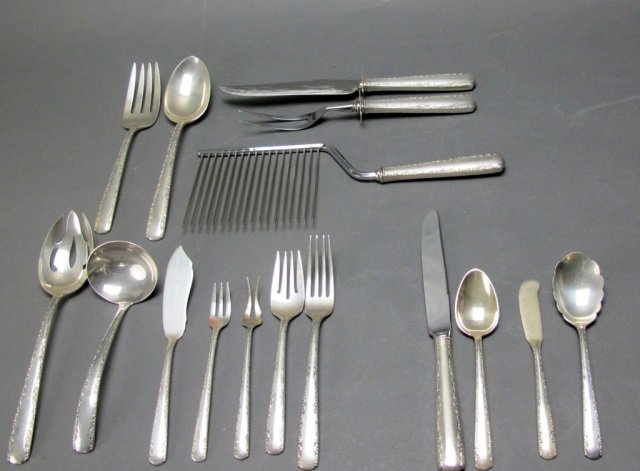 Lot of Sterling Silver FlatwareMar 07, 2026Towle Sterling Silver Flatware Service4 days Left"Melrose" by Gorham Sterling Silver Flatware (34) 764 GramsMar 28, 2026(94) PIECE GORHAM STERLING FLATWARE SERVICEMar 05, 2026STERLING FLATWARE INC. 7 KNIVES, 4 DINNER FORKS, 4 T-SPOONS & 2 SALAD FORKS APPROX. 22.9 TROY OZMar 15, 2026Towle "Dorothy Manners" Sterling Silver Flatware 1017 Grams 40 PiecesMar 28, 202661 pc WALLACE CARMEL PATTERN SILVER FLATWARE,1530g19 hrs LeftGorham "St. Dunstan" sterling flatware set.448 Lots AwayGorham Sterling "Camellia" Flatware Service2 days LeftA 107-piece WMF German Art Deco silver plate flatware service for 12Mar 15, 202626 pc GORHAM ST CLOUD SILVER FLATWARE, 1040g19 hrs Left57 Misc. Pieces of Sterling Silver Flatware2 days Left62pcs. VARIOUS-PATTERNED SILVER FLATWARE, 2682g19 hrs LeftGORHAM STERLING FLATWARE SET.18 hrs LeftS. KIRK STERLING FLORAL REPOUSSÉ FLATWARE, 84PCS.18 hrs Left34 pc WOOD LILY PATTERN SILVER FLATWARE, 1180g19 hrs Left
