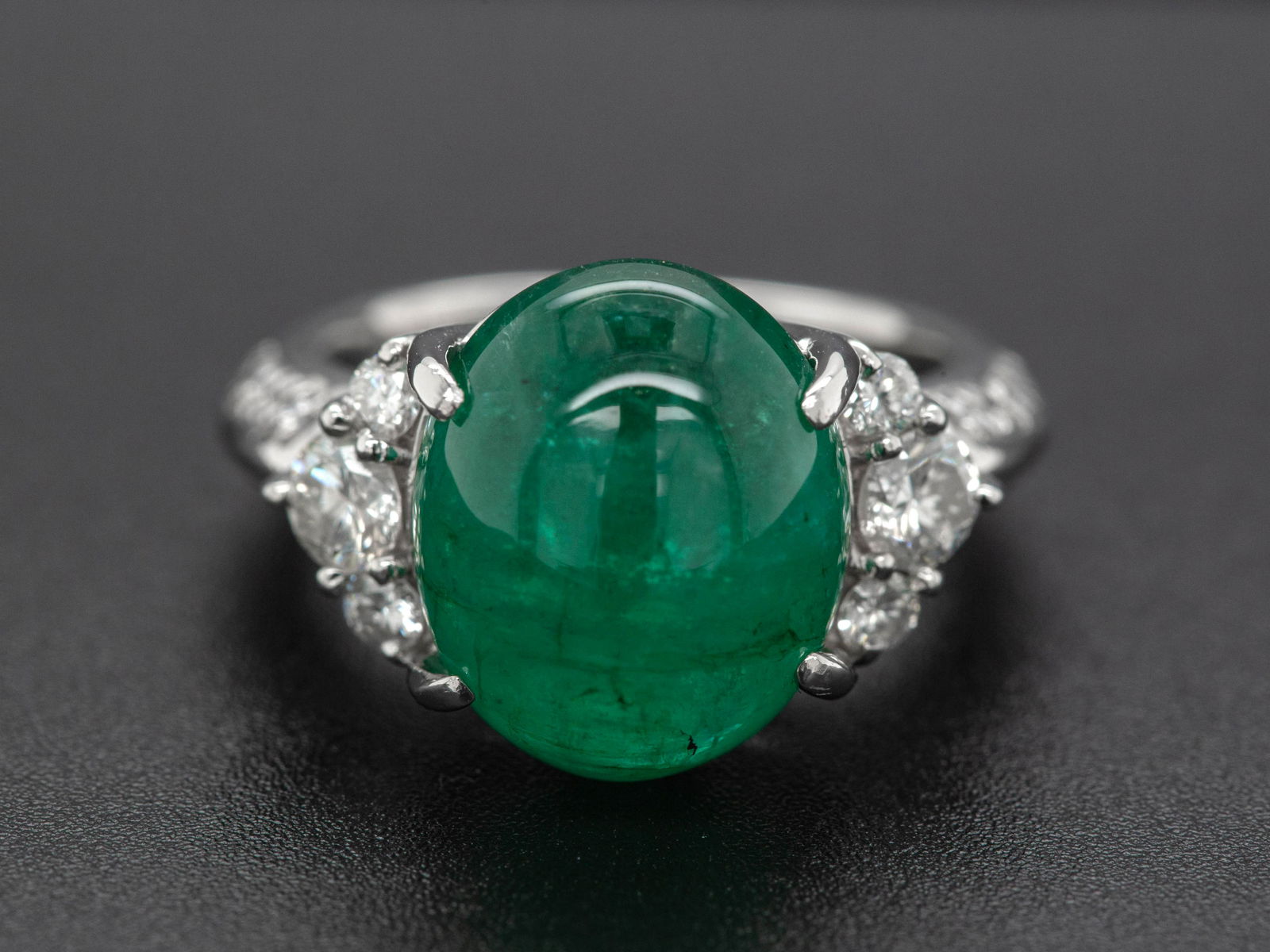 7.47tcw - Emerald & Diamonds - Platinum Ring