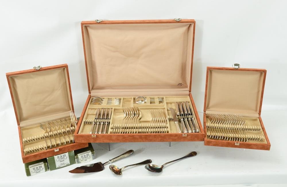 A composed lot of eight various antique French silver-plated CHRISTOFLE cutlery sets3 days LeftService Set 50 pcs by Christofle France "Rubans" silver-plated flatware in a wooden storage case.17 hrs LeftChristofle Vendome Silverplate Flatware Set 121 pcs for 12 Service Unused4 days Left(83 pcs) Vintage Brass Tone Silver Plated Flatware SetMar 10, 2026Towle "French Provincial" Sterling Silver Flatware Set of 41 in Sterling SilverJul 06, 2025Vintage Lunt Sterling Silver Alexandria Flatware Set2 days LeftTowle "French Provincial" Sterling Silver Flatware Set of 41 in Sterling SilverJul 28, 2025LUNT ELOQUENCE STERLING SILVER FLATWARE FOR (24)4 days LeftTowle "French Provincial" Sterling Silver Flatware Set of 41 in Sterling SilverJul 18, 2025Towle "French Provincial" Sterling Silver Flatware Set of 41 in Sterling SilverJul 19, 2025Christofle, Potfer, and Ercuis French Silver Plate PiecesMar 04, 2026Silver Plated Flatware Set in Wooden CaseMar 05, 2026Towle "Fontana" Sterling Silver Flatware 35 Piece SetJul 13, 2025Antique French Sterling Silver Flatware Set by Francois Nicoud 51 Pcs7 days LeftReed and Barton Dancing Flowers Sterling Silver Flatware - Set of 55Jul 20, 2025Reed & Barton Dancing Flowers Sterling Silver Flatware Set 83 pcs Service for 12 UnusedMar 01, 2026