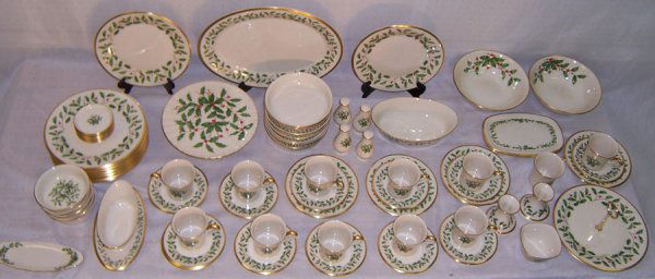 (77) Pieces Holly pattern dinner set by Lenox