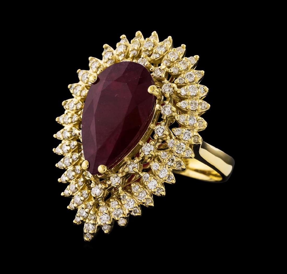 14K Yellow Gold 9.32ct Ruby and 1.01ct Diamond Ring