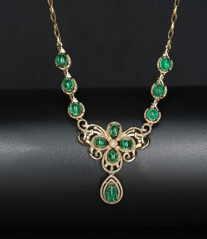 14k Gold 7.2 Ct Natural Emerald & Diamond Necklace
