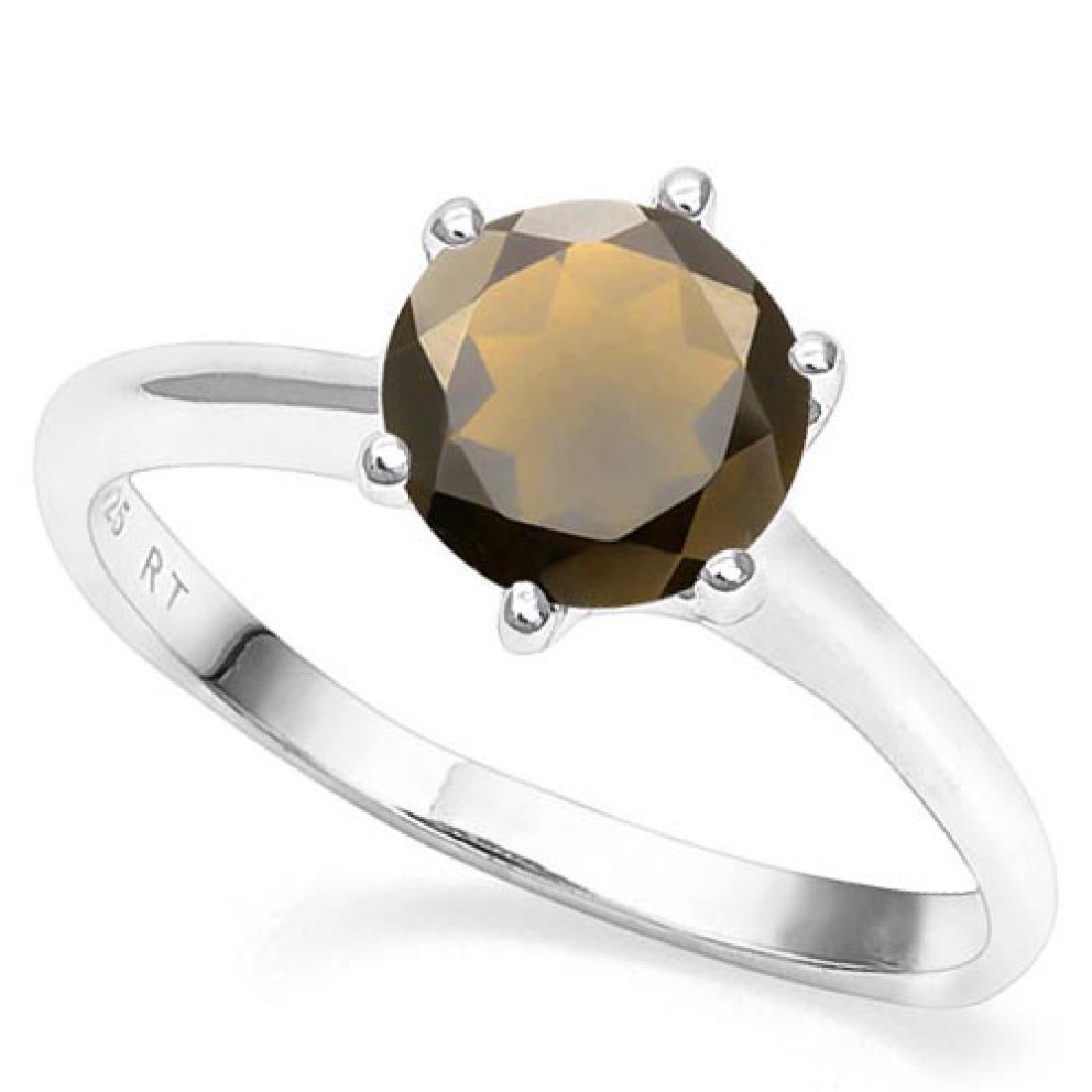 7mm Round Genuine Smokey Silver Ring