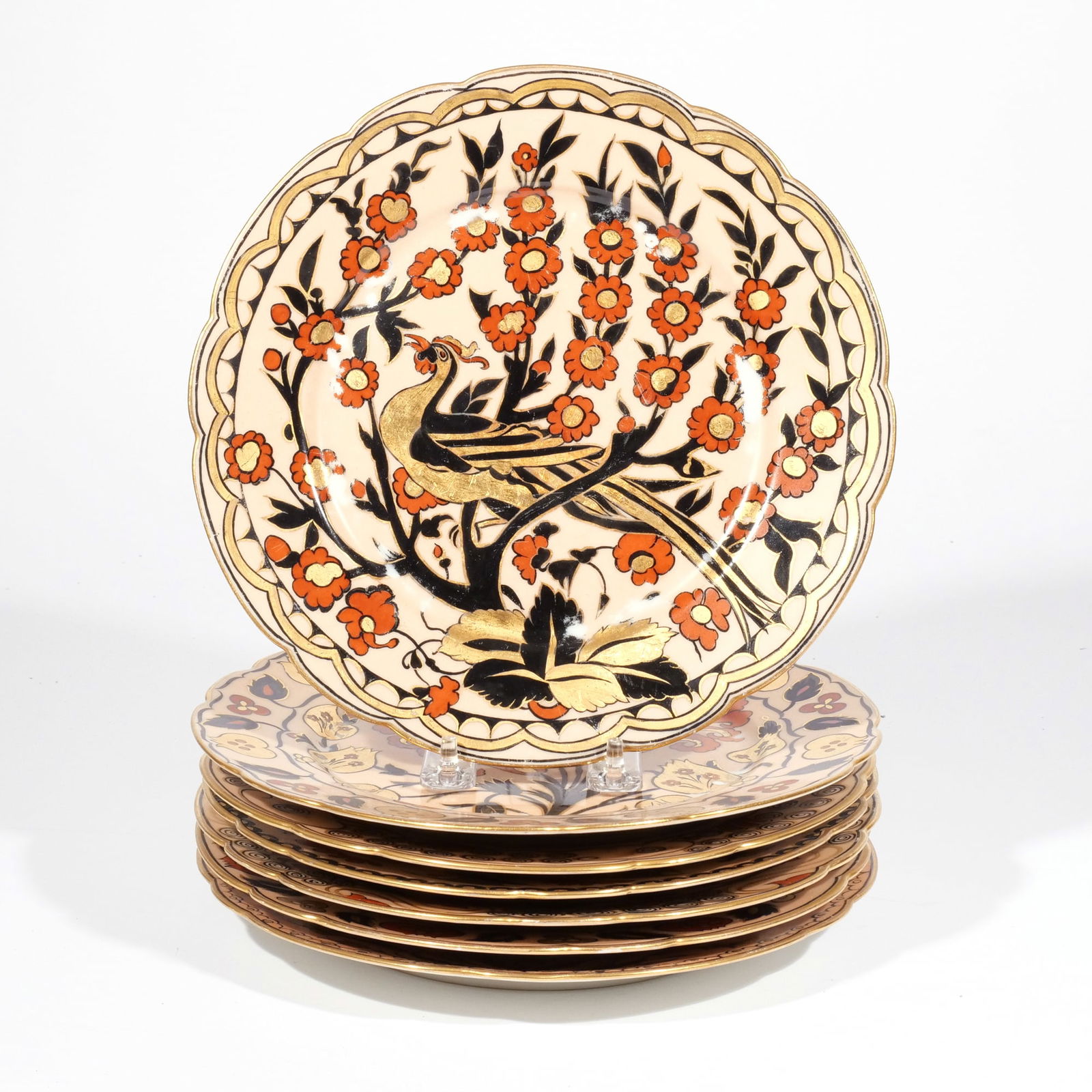 (7pc) Set Limoges Deco Pattern Dessert Plates