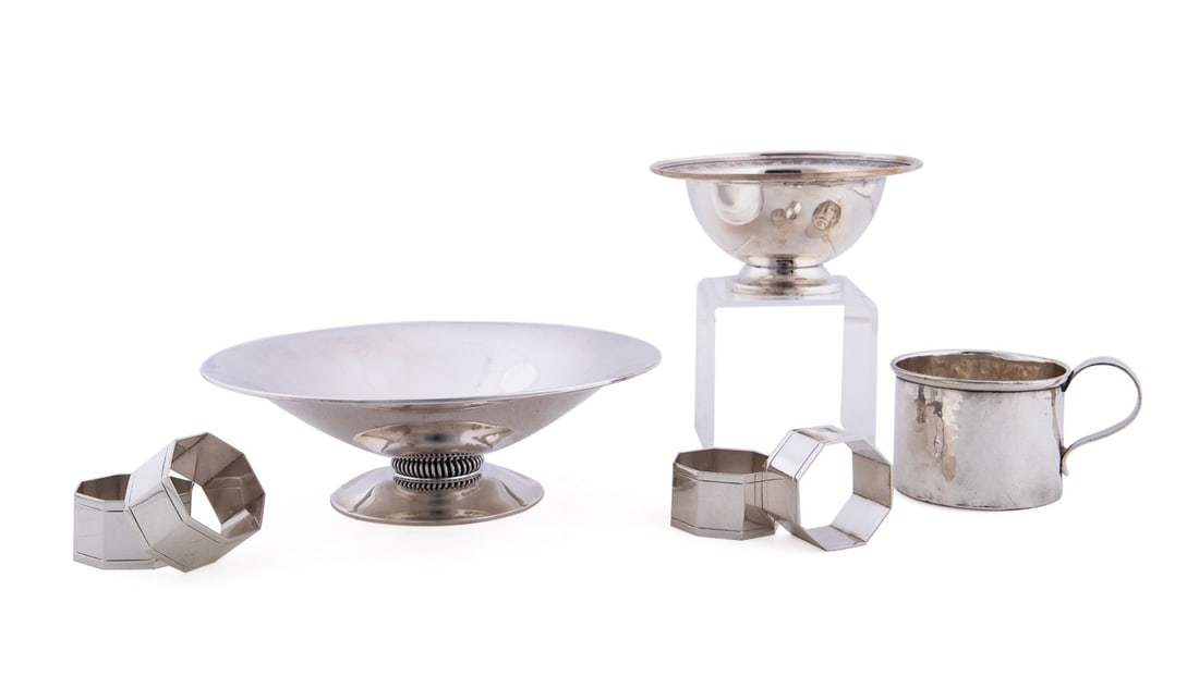 7PCS STERLING SILVER TABLEWARE, ART DECOR STYLE