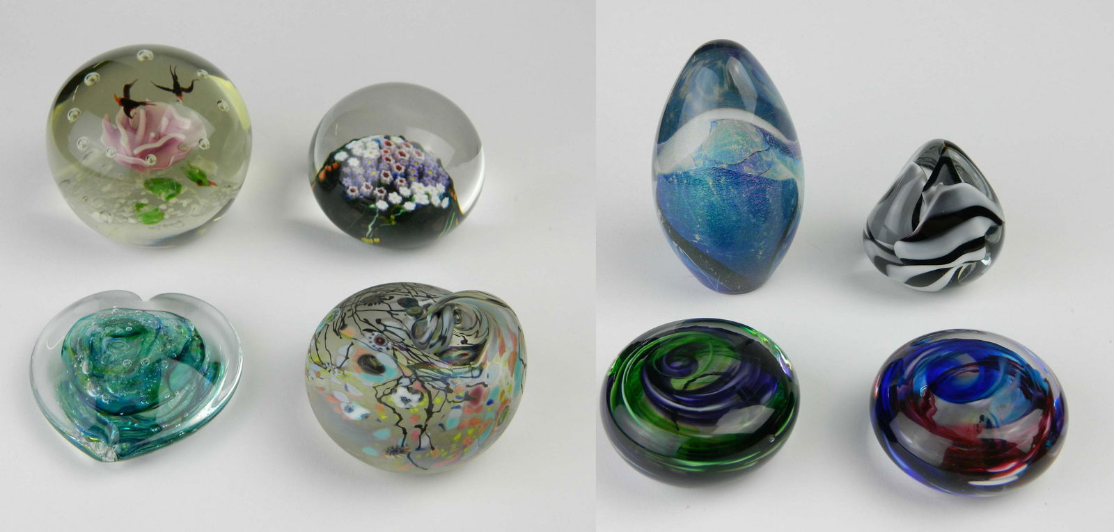 8 Art glass paperweights