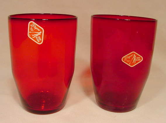 8 Bryce Hand Blown Glass Ruby Tumblers NR