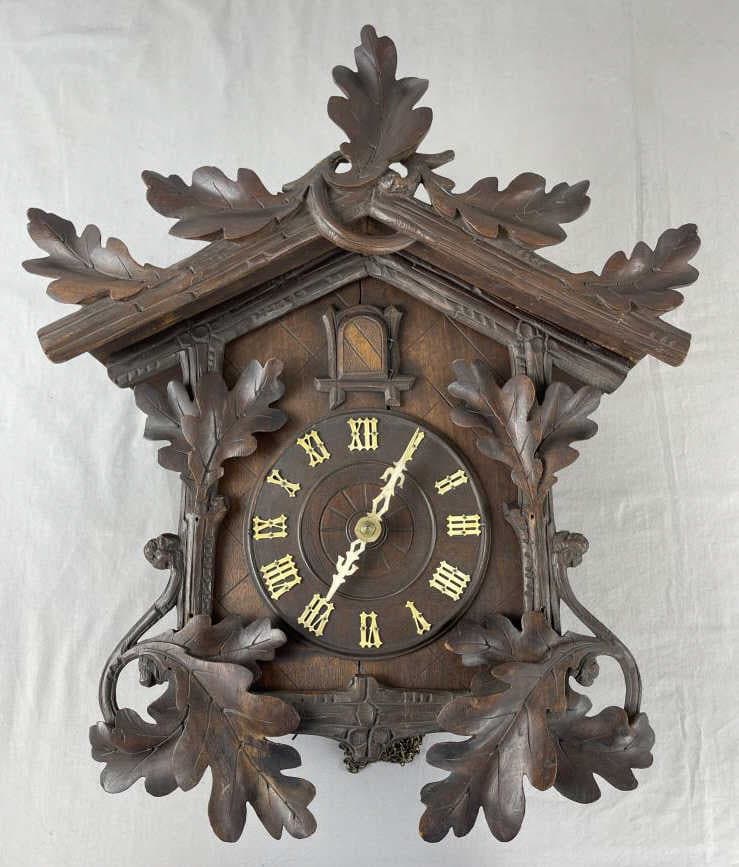 BLACK FOREST STYLE CUCKOO CLOCK2 days LeftAntique German Regulator Wall Clock Pendulum w/key, Mixed Wood types, Carved Details, 30 x 15 x 8...German Black Forest Wooden Cuckoo ClockApr 12, 2026Antique Wall Mounted Cuckoo ClockApr 01, 2026Self Winding Clock Co. Model 10 Wall ClockApr 02, 2026ARTS & CRAFTS WESTMINSTER OAK WALL CLOCKApr 04, 2026SCOTTISH MAHOGANY TALL CASE CLOCKApr 17, 2026Black Forest Style Cuckoo Clock With Rabbit And Pheasant6 days LeftLarge Vintage German 3 Weight Cuckoo Wall Clock.Apr 01, 2026BLACK FOREST CUCKOO TABLE OR MANTLE CLOCK3 days LeftFancy antique Kitchen Clock, circa 1900, eight day time & strike, with key and pendulum, attributed6 days LeftSelf Winding Clock Co. Wall ClockApr 02, 2026Welch Patti No. 1 VP Rosewood Shelf Clock23 hrs Left1800'S GRANDFATHER CLOCK5 days Left