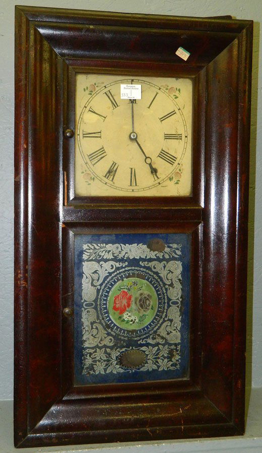 8 day ogee pendulum clock w/reverse painting.