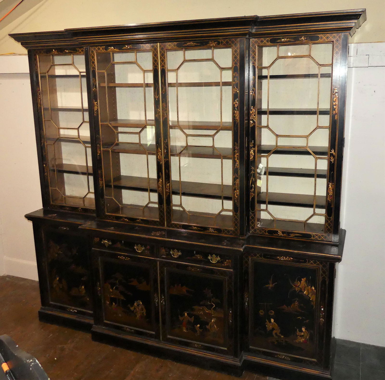 8 FOOT JAPANNED BREAKFRONT