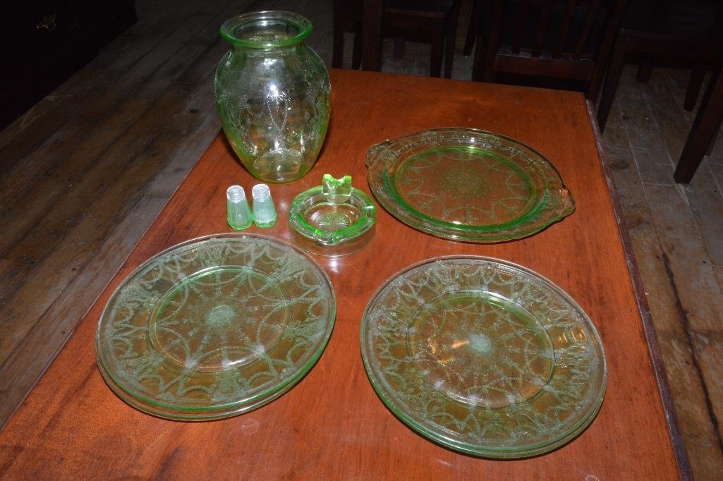Lot of Wedgwood ItemsMar 26, 2026Uranium glass lot. Juicer,plates,and coastersMar 09, 2026Lot of 5 Green Pressed Glass Bowls6 days LeftLot of Decor Crystal and Goldtone Items1 day LeftVintage 10-Piece Iris & Herringbone Iridescent Marigold Carnival Glass Plates +7 days LeftAmerican Uranium Vaseline Glass Collection, Featuring Anchor Hocking, Cambridge Glass Company, 20th5 days LeftSet 5 Vtg Green Depression Glass Swirl Bowls4 days LeftART NOUVEAU BOHEMIAN GREEN GLASS VASE COLLECTION7 days Left6pc Vintage Uranium Depression GlassMar 02, 2026(3) Depression Glass Items, Daffodil Pattern, Green With Gold Trim7 days LeftGreen Depression Glassware, Including Vase, Cups, and Plate GroupingDEPRESSION ERA URANIUM GLASS BY ANCHOR HOCKING BRIGHT GLOW UNDER BLACKLIGHTUranium Green Depression Glass Bowls Set Of 4Mar 01, 2026Green, Depression, and Uranium Glass20 hrs LeftLouie B. Westin Green and Black Uranium DepressionMar 01, 2026Vntg Green Depression Glass 3 Sec Divided DishFeb 25, 2026