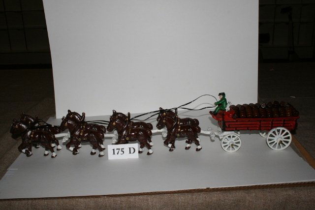 ASSORTED VINTAGE CAST-IRON TOYS, LOT OF THREE5 days LeftTin & cast metal horse drawn carts, toy cannonModel of 2 draft horses hitched to hay wagonMar 27, 2026Model of 2 draft horses hitched to wagonMar 27, 2026Model of 2-horse hitch with 3-seat dog cartMar 27, 2026Antique German Putz horse & wagon toy5 days LeftWooden 2-seat wagon with one horse hitchMar 27, 2026Cast Iron Painted 8 Team Pulling Wagon with Drivers and Barrels2 days LeftConestoga wagon model with horsesMar 27, 2026Model of 2-horse hitchMar 27, 2026Barrel wagon model with horsesMar 27, 2026CARPENTER TWO SEAT DEPOT WAGONMar 20, 2026BRITAINS HORSE DRAWN WAGON W/ SOLDIERS & CANNONSMar 09, 2026Dairy wagon model with horsesMar 27, 2026TWO CAST IRON HORSE PULLED FIRE WAGONS2 hrs LeftAmerican Painted Tin Horse-Drawn Water WagonMar 14, 2026