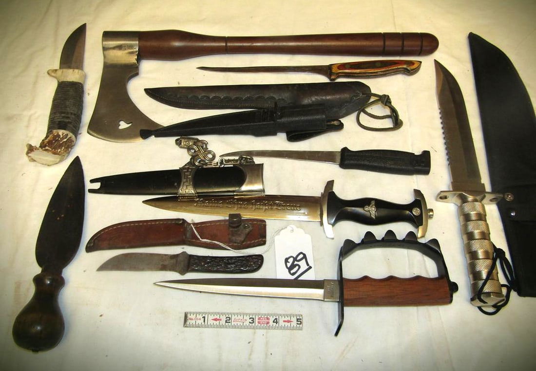 LOT 4 KNIVES WITH DECORATIVE HANDLES6 days LeftLot of Kitchen Knives5 days LeftLOT OF 6: US WWI-WWII MACHETES AND AXE4 days LeftLot of 4 Mid-19th Century Franch Bayonets and Vintage Hunting Knives with Leather Sheaths24 hrs LeftLOT OF 8: HARRY MCEVOY TRU-BALANCE THROWING KNIVES.4 days LeftLot Of 19 Folding Pocket Knives, Smith & Wesson, Genske & More23 hrs LeftVintage Lot Of 7 Fish Knives, Schrade's Case Colonial And More23 hrs LeftLot Of 15 Mostly Vintage Leather Knife Sheaths Case Brand And More23 hrs LeftLot Of 9 Barlow Knives Camillus Tl-29, M Klein, And More23 hrs LeftLot Of Knife Sheaths / Cases, Some Leather And Nylon And A Few Cutlery Knives23 hrs LeftLot Of 3 Large Pocket Knives, Camillus Nkca Limited Edt, Schrade Old Timer And More23 hrs LeftMixed Lot of 14 Bayonets1 day LeftFrench Fixed Blade Brass Handled Knife and Fixed Blade Stage Hunting Knife w/ Leather Sheath3 days LeftVintage Pocket Knives (6)Mar 09, 2026Collection Of 13 KnivesMar 22, 2026MISC KNIVES , ETC22 hrs Left