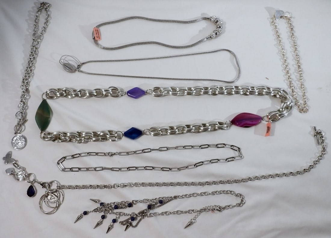 (8) Large Silver Tone Necklaces