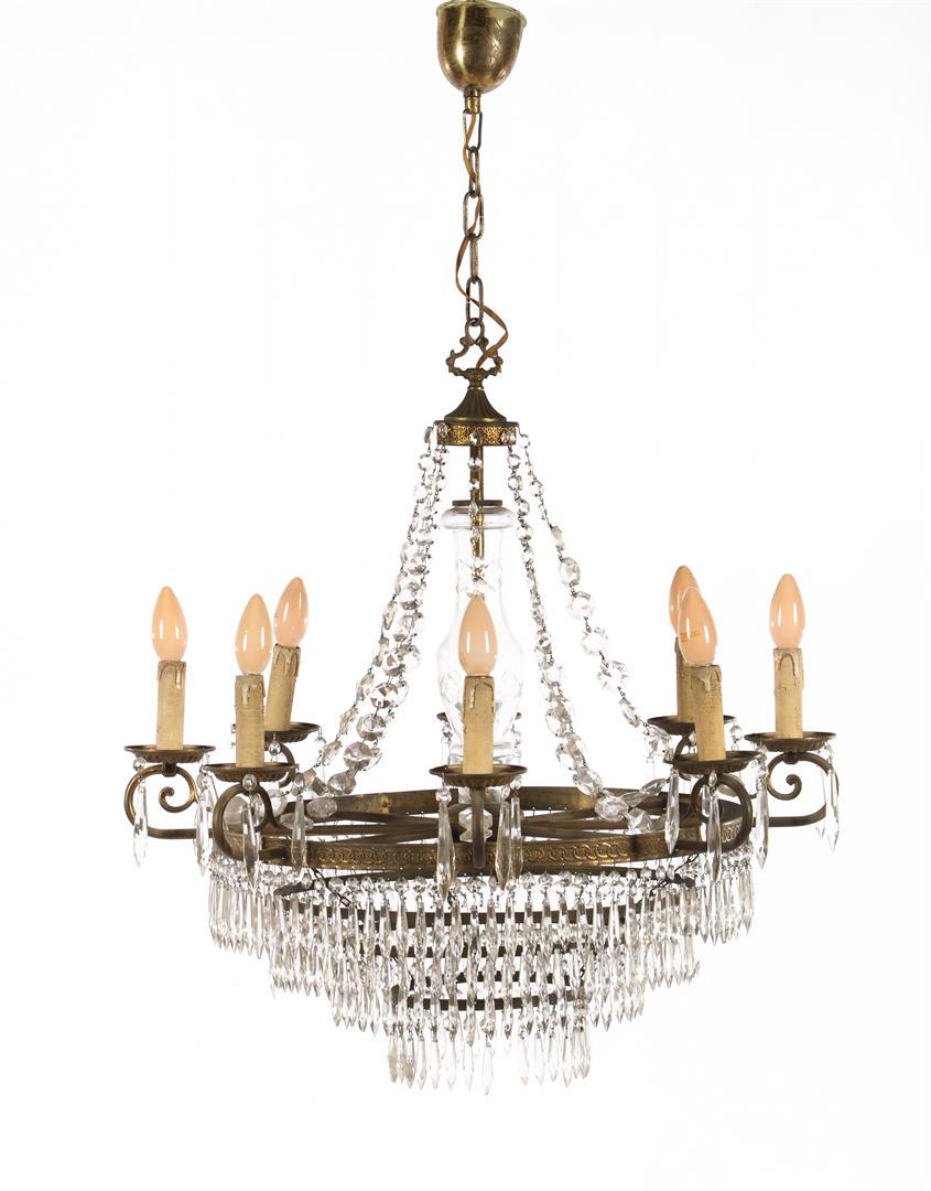 Eight-Light Brass and Italian Cut Crystal Chandelier in Louis XIV MotifMynt Auctions4.4(832)$1006 days Left