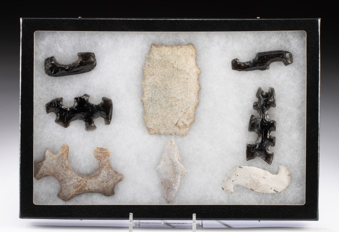 8 Maya Assorted Chert & Obsidian Eccentric Flints