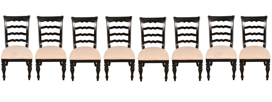 8 MCM Ebonized Serpentine Ladder Back Side Chairs