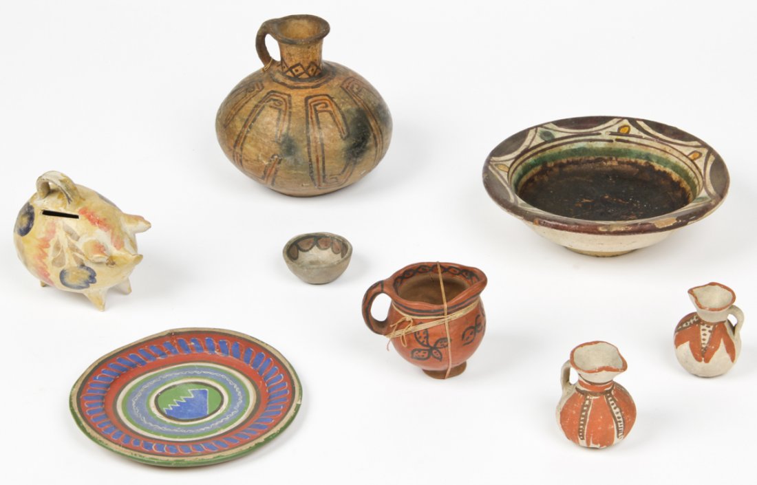 8 Mexican Earthenware Pottery Vessels and Plates
