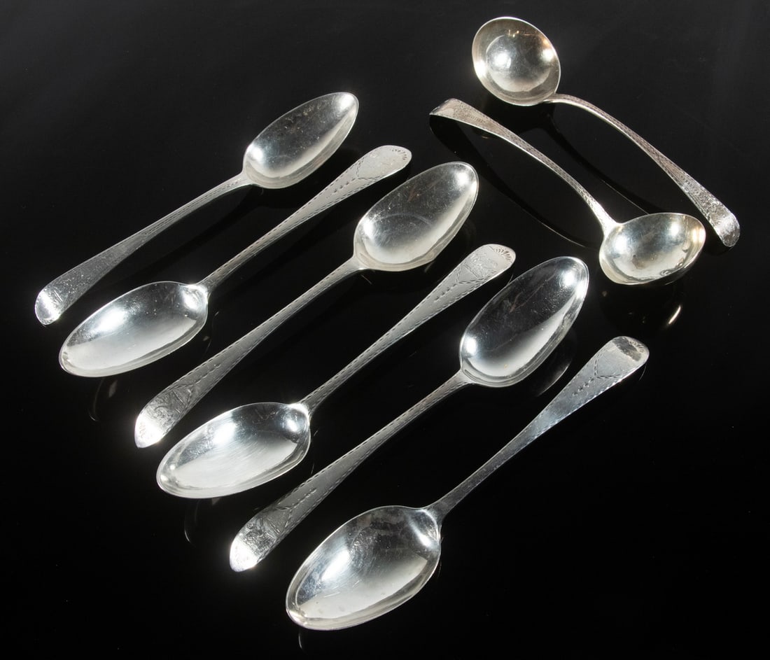 (8 PCS) GEORGE III BRIGHT CUT STERLING FLATWARE